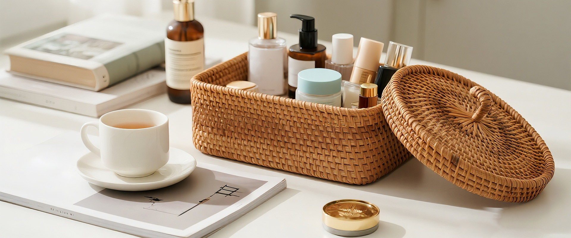編み込みデスクトップ収納ボックス