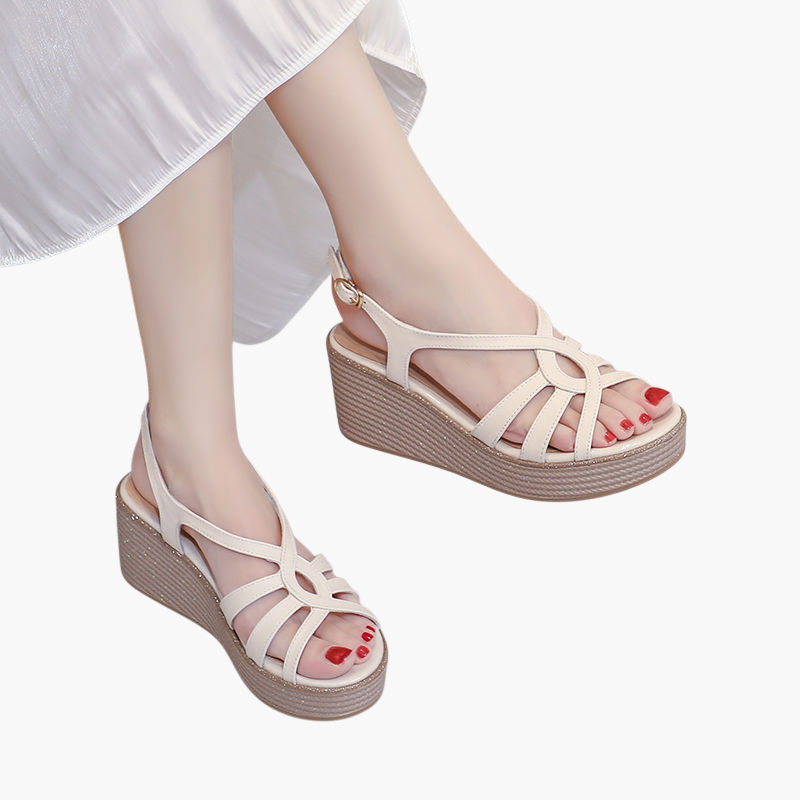 ウェッジヒールのピープトゥサンダル