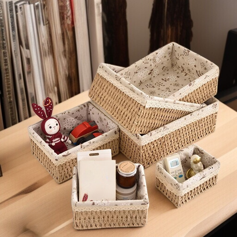 編み込みデスクトップ収納ボックス